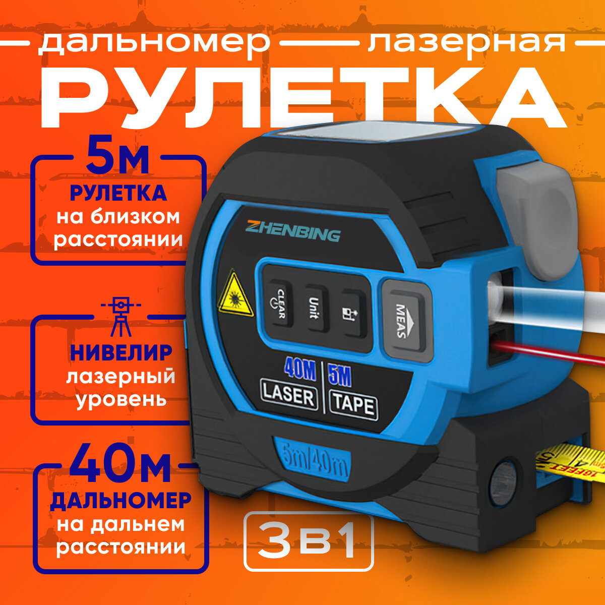 (3в1) Рулетка 5м + дальномер 40м + уровень лазерный/ строительный измерительный инструмент/ нивелир/ с автостопом