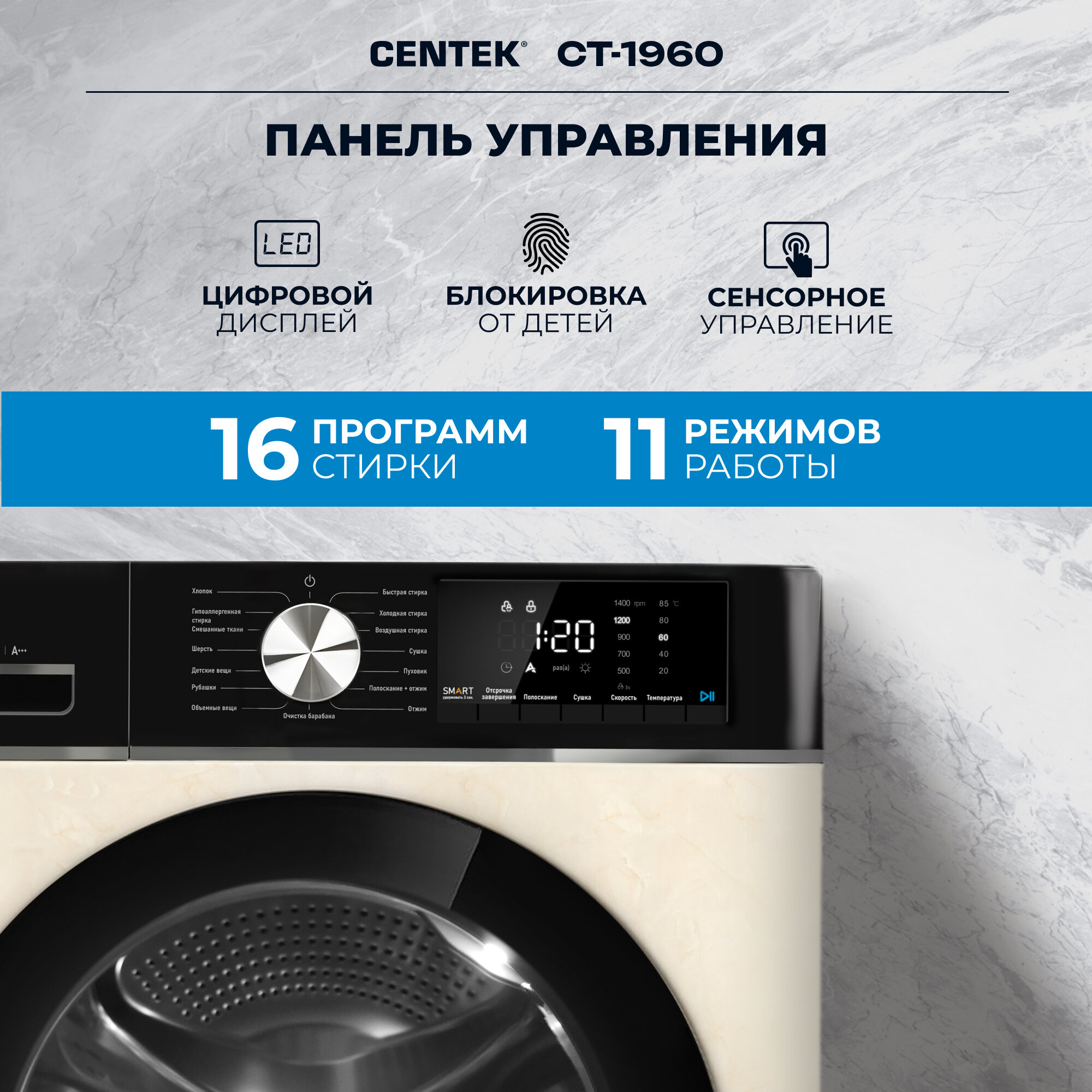 Стиральная машина автомат с сушкой CENTEK CT-1960: бежевая, узкая, 8кг/5кг, инверторный двигатель 51 644 ₽ Подробнее