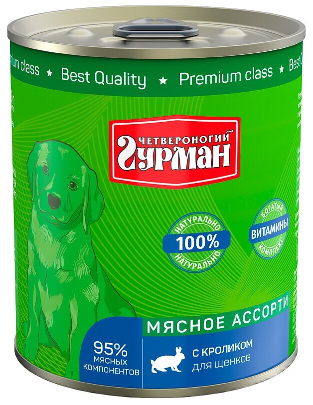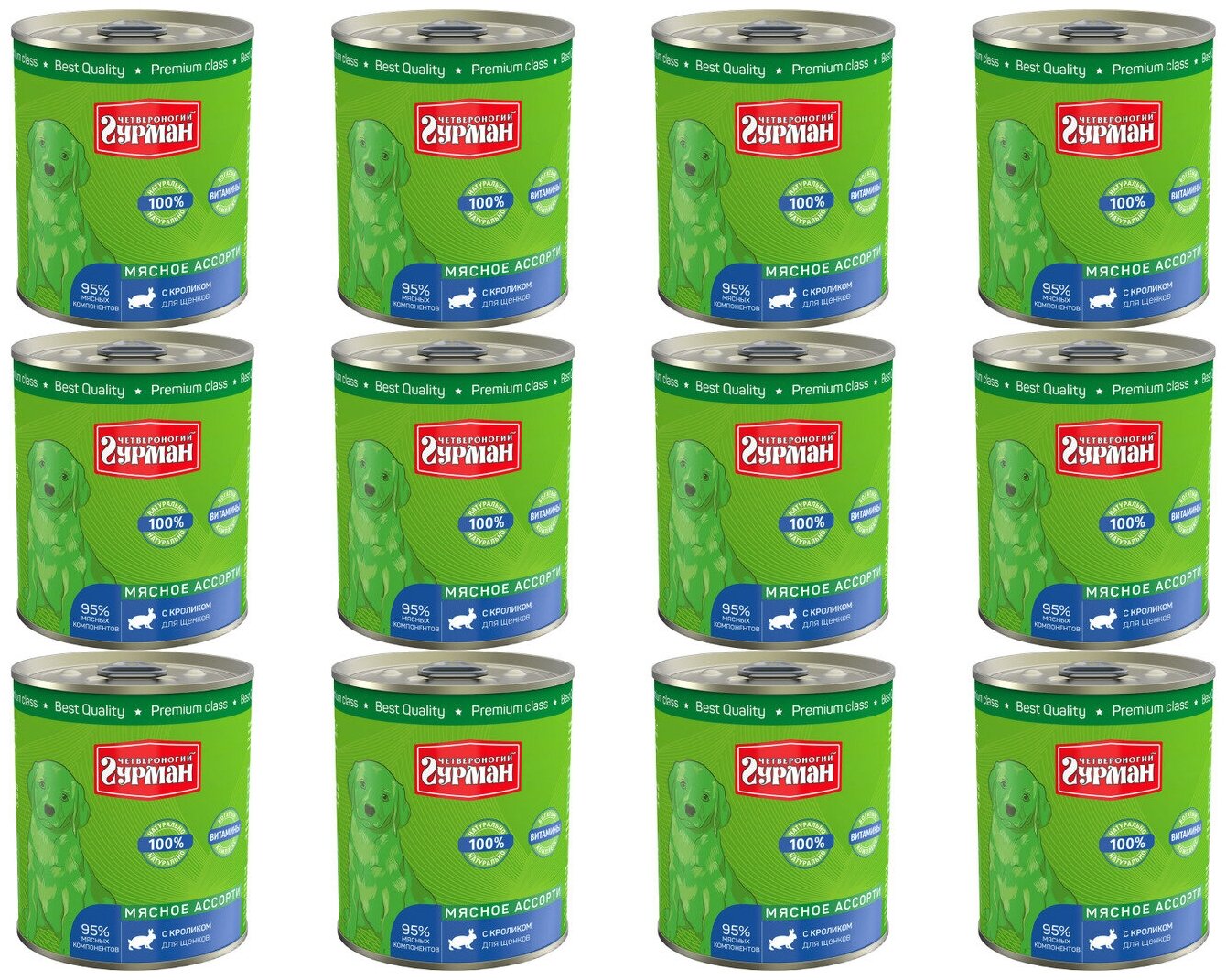 Корм консервированный для щенков Четвероногий Гурман "Мясное ассорти с кроликом", 340 г х 12 шт