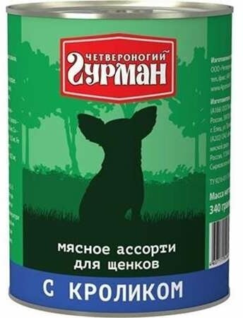 Корм консервированный для щенков Четвероногий Гурман "Мясное ассорти с кроликом", 340 г х 12 шт