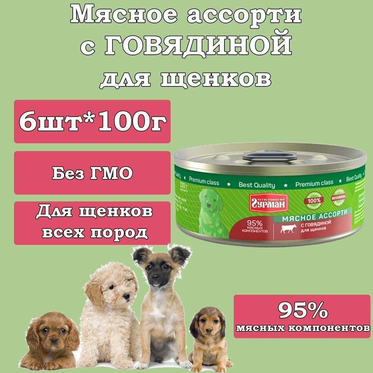 Четвероногий Гурман для щенков Мясное ассорти с Говядиной,консервы 100г (24 банки)