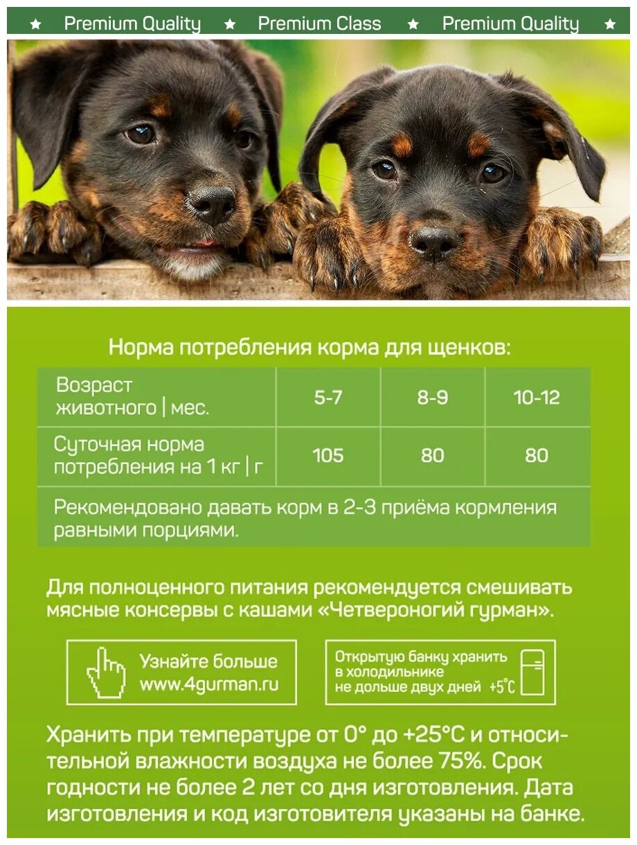 Четвероногий Гурман Консервы для щенков, 340г 0.34 кг