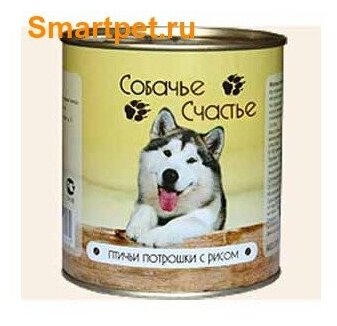 Корм для собак Собачье счастье консервы для собак Птичьи потрошки с рисом 750г