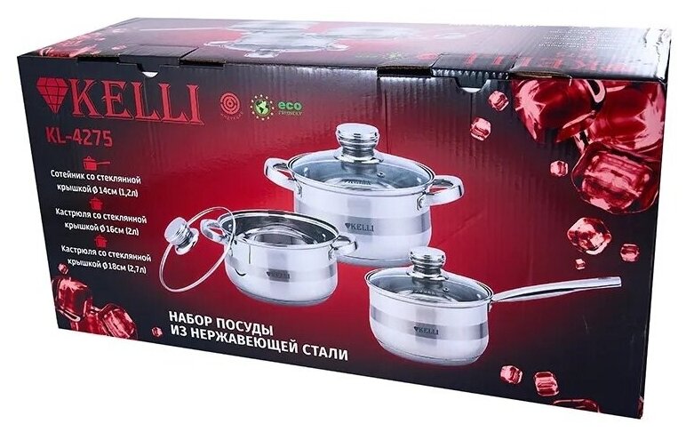 Кастрюля Набор посуды Kelli KL-4275 6 предметов с панорамными крышками