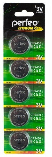 Аккумуляторы и батарейки Батарейка CR2430 литиевая Perfeo CR2430/5BL Lithium Cell 5 шт