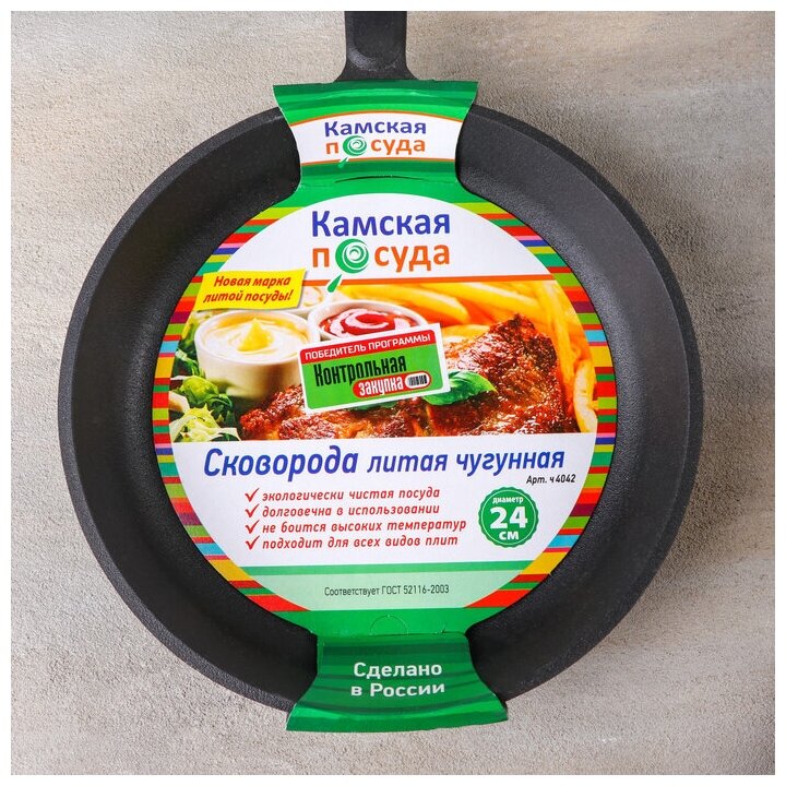 Сковорода Камская посуда, литая, чугунная, с чугунной ручкой, 240х40 .