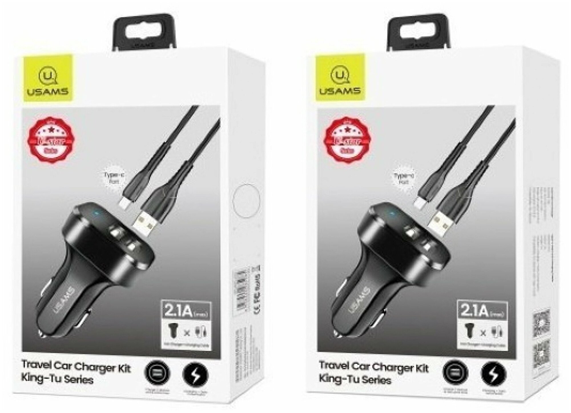 Зарядки для гаджетов Автомобильное ЗУ USAMS C13 + кабель iPhone Lightning (2USB/2.1A) черное
