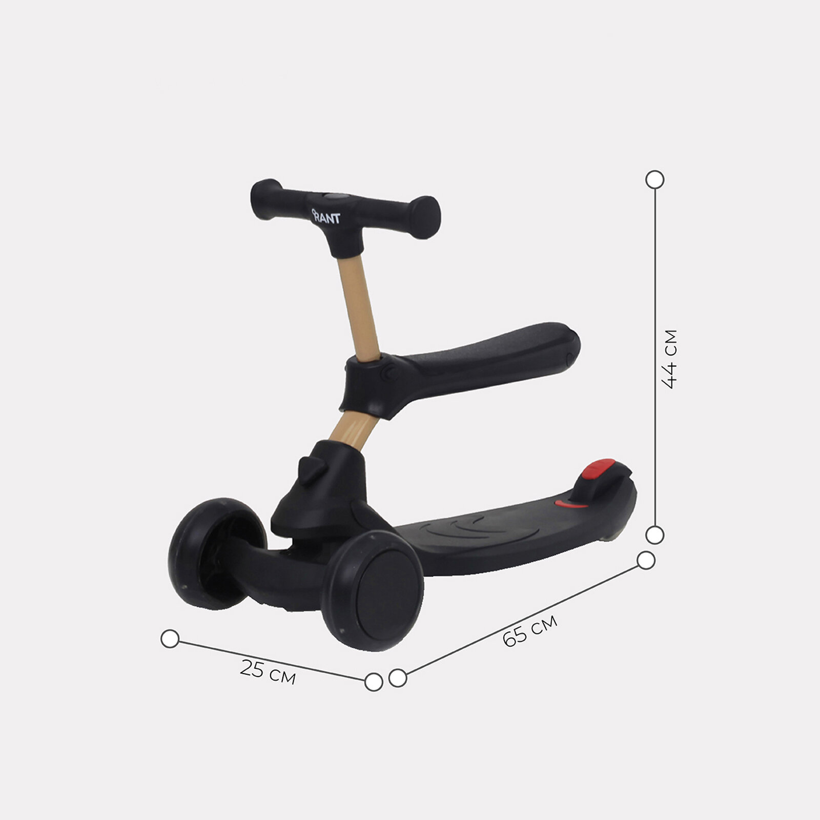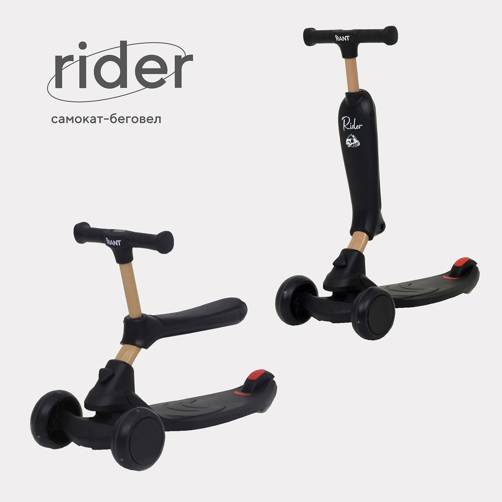 Самокат Беговел-самокат RB100 "Rider" со светящимися колесами от 1 года, черный