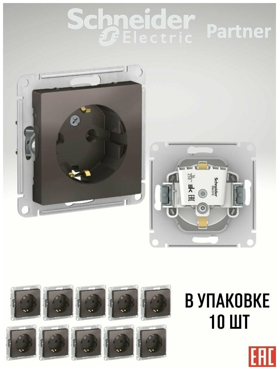 Розетка ATLASDESIGN, скрытый монтаж, с заземлением, мокко | код. ATN000643 | Schneider Electric (8шт. в упак.)