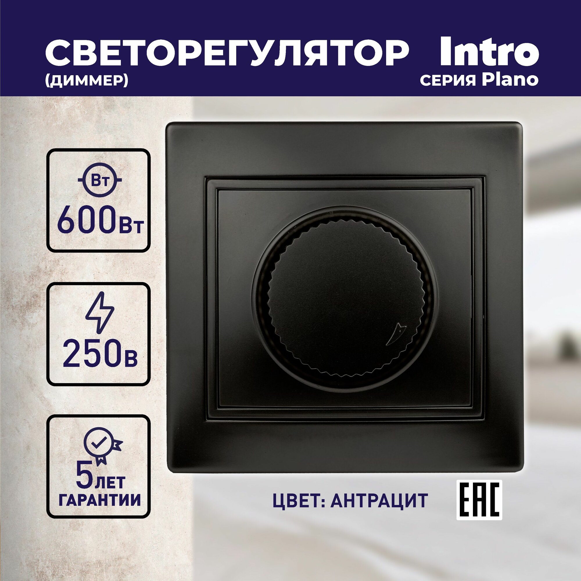 Выключатель Светорегулятор Intro Plano 1-401-05 (диммер) поворотный, 600Вт 230В, IP20, СУ, антрацит арт. Б0053938 (1 шт.)