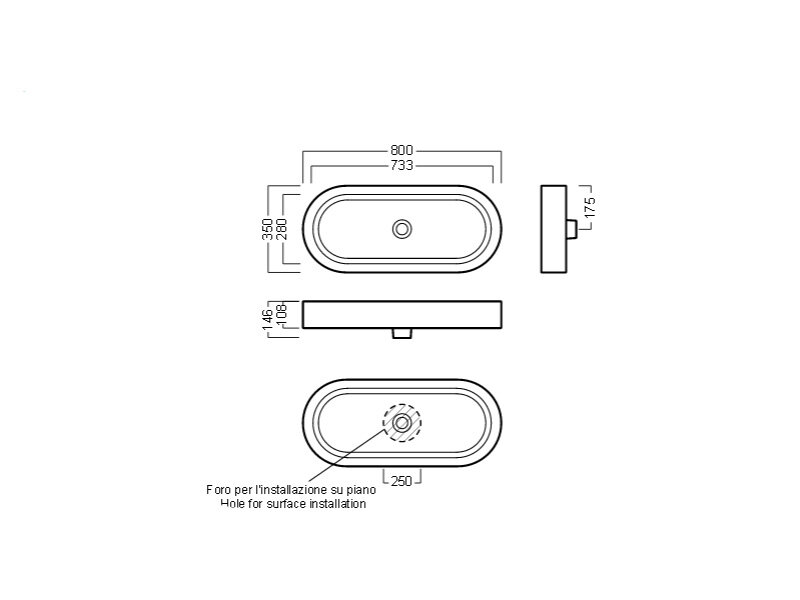 Раковина накладная HATRIA AREA Y0UF01, 80х35 см, без донного клапана, белая глянцевая