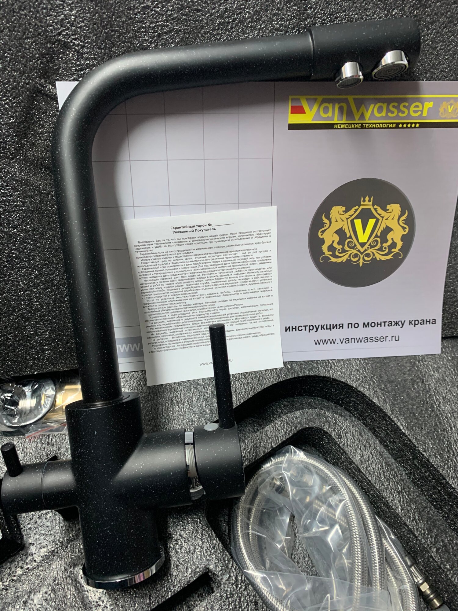 Смеситель Смеситель для кухни VanWasser VN15081C с подключением к фильтру питьевой воды, черный