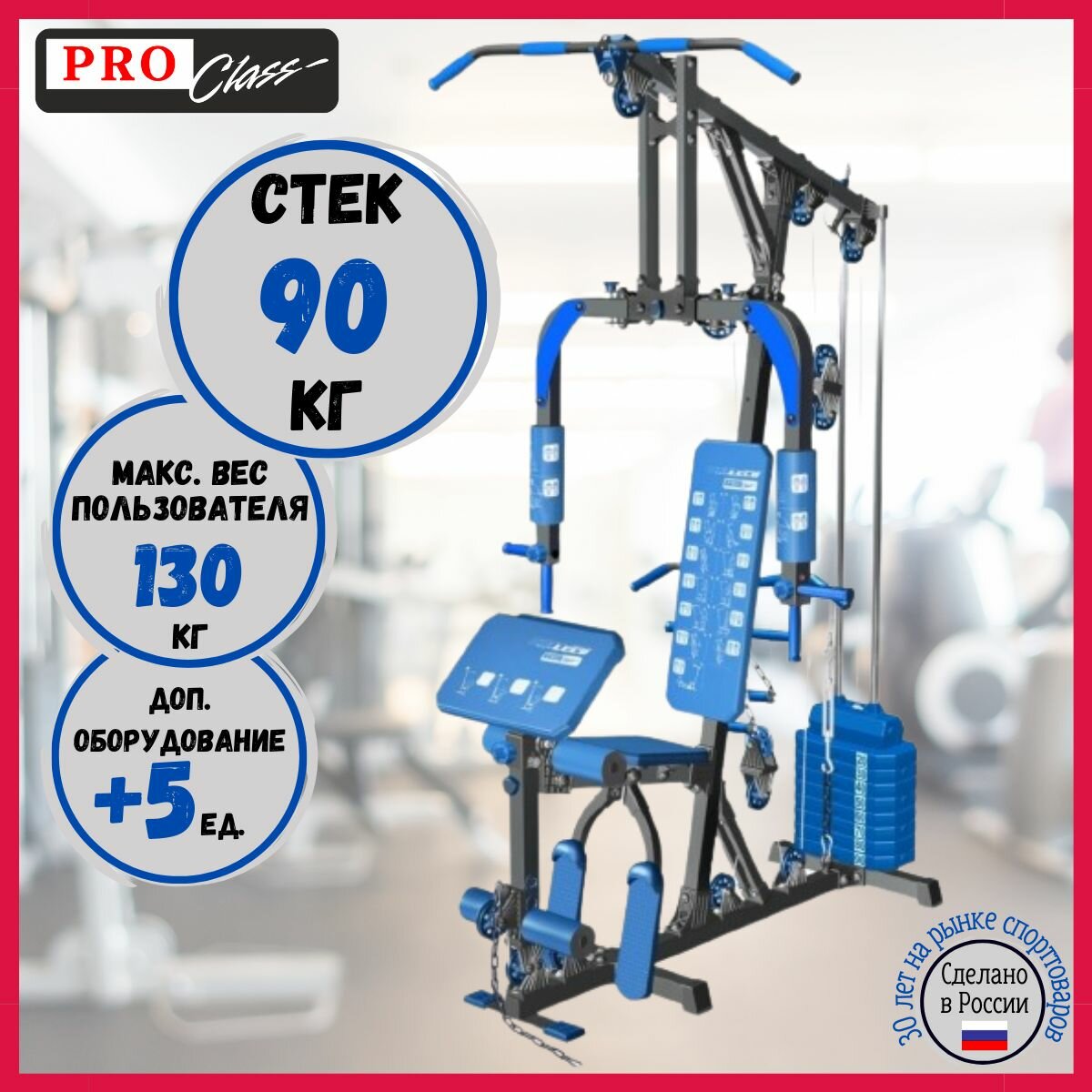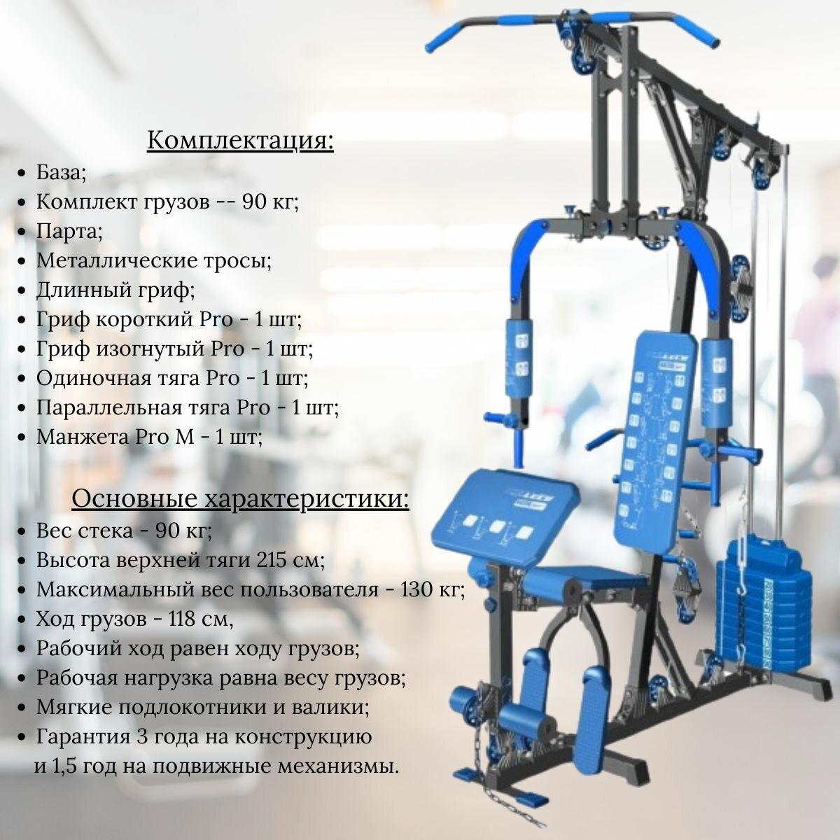 Силовой тренажер Станция силовая Leco-IT Pro, вес стека 90 кг, с дополнительным оборудованием, без электронного тренера, черно-синий