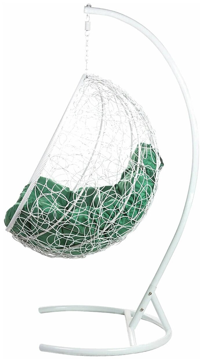 Кресло подвесное Bigarden "Kokos", белое, со стойкой, зеленая подушка (чехол в подарок)