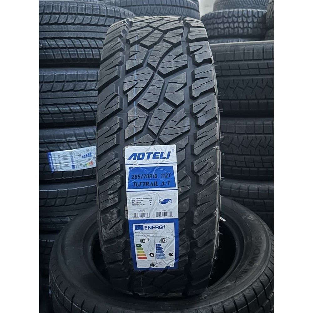 Шины от компании Aoteli, модель Tuftrail A\/T 265\/70 R16 112T, Сезон всесезонная, Тип внедорожная и Назначение вседорожная (All-Terrain), а также Ширина 265 мм.