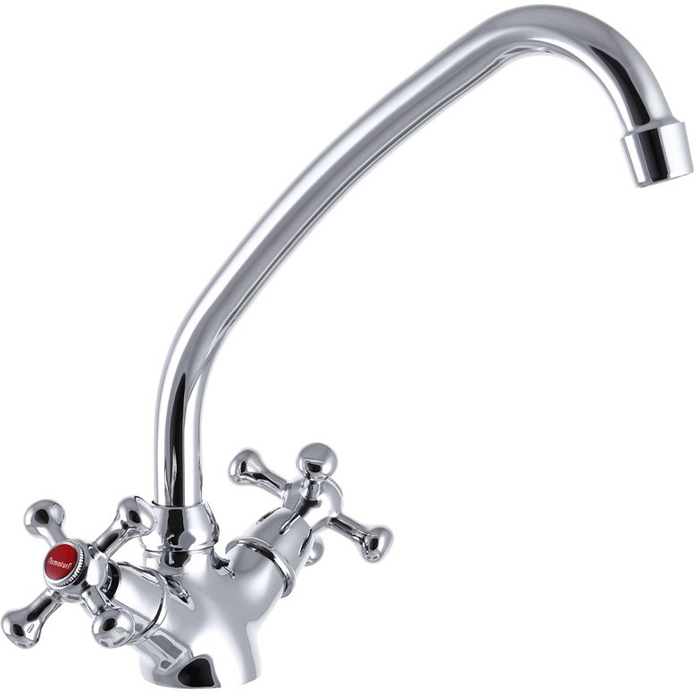 Смесители от компании Armata, модель 555 AR0015, Назначение для кухни, Тип смесителя двухвентильный и Дизайн вентилей крестообразные, а также Форма П-образный.