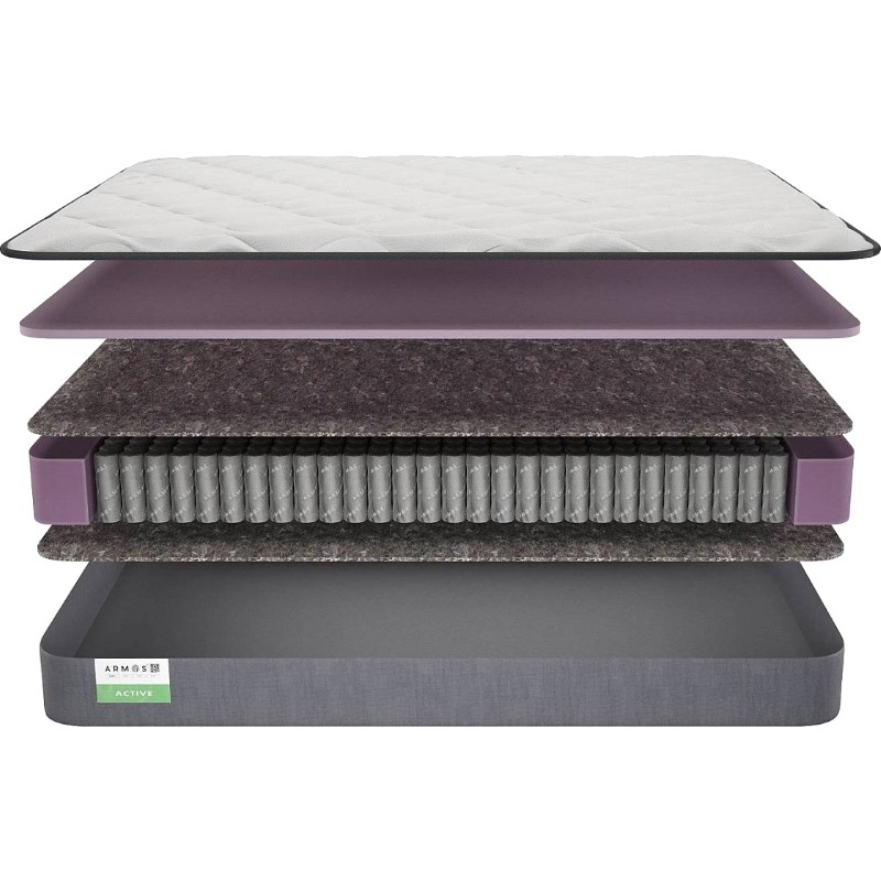 Матрас от компании ARMOS, модель Active Soft (160x190), Тип пружинный (независимый), Жесткость низкая и Количество слоев 4 шт, а также Наполнитель пенополиуретан, термовойлок.