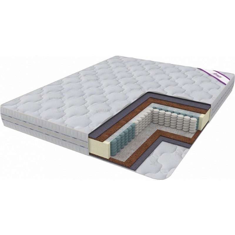 Матрас от компании ARMOS, модель First (70x190), Тип пружинный (независимый), Жесткость выше средней и Мультизональный +, а также Количество слоев 7 шт.