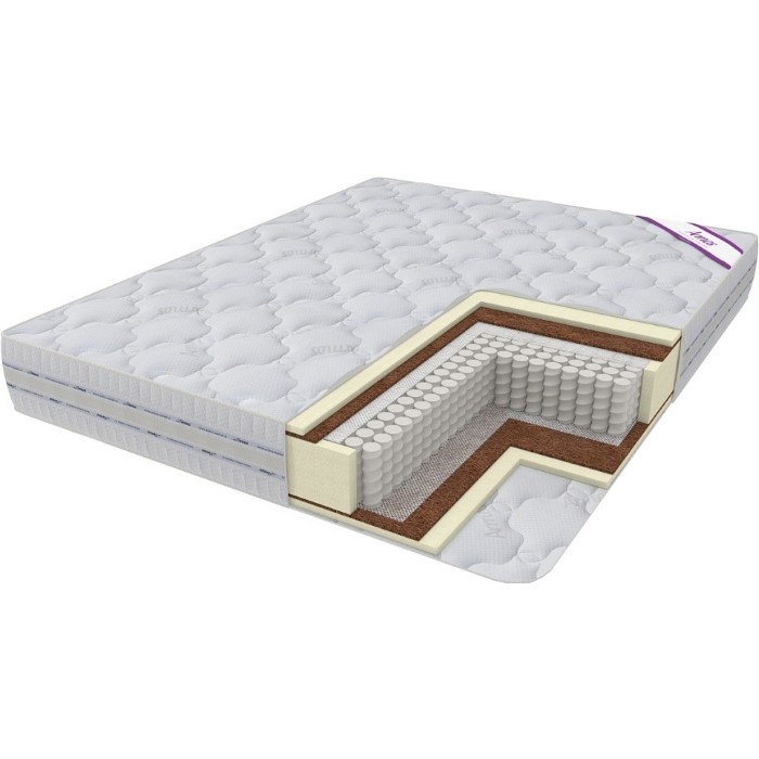 Матрас от компании ARMOS, модель Venus (160x195), Тип пружинный (независимый), Жесткость ниже средней и Количество слоев 7 шт, а также Наполнитель пенополиуретан, кокосовая койра, спанбонд.