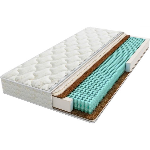 Матрасы от компании Askona, модель Juck 80x195, Тип пружинный (независимый), Жесткость средняя и Количество слоев 5 шт, а также Наполнитель латекс, кокосовая койра.