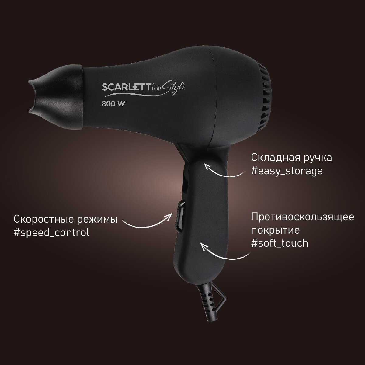 Фен SCARLETT SC-HD70IT02 черный,1300Вт, складная ручка, ионизация