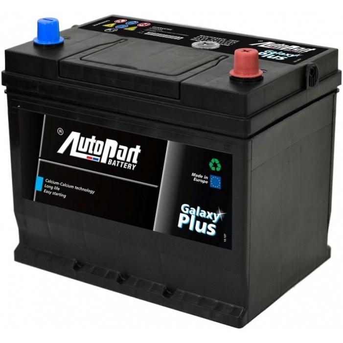 Автоаккумуляторы от компании AutoPart, модель Galaxy Plus Jap 6CT-70L, Тип стартерный, Назначение авто и Обслуживание необслуживаемый, а также Форм-фактор азиатский.