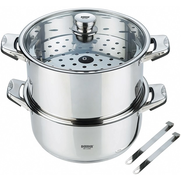 Кастрюля от компании Bekker, модель BK-935S, Тип пароварка, Основных предметов 2 шт и Размер 30 см, а также Объем 9.5 л.