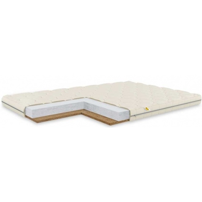 Матрасы от компании Benartti, модель Baby Optima 70x190, Тип беспружинный, Жесткость средняя / высокая (3/5), двусторонний и Количество слоев 2 шт, а также Наполнитель кокосовая койра, холлкон.