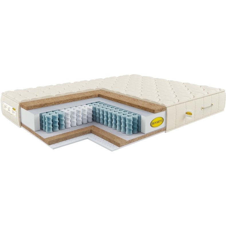 Матрас от компании Benartti, модель Prime Orto S1000 120x190, Тип пружинный (независимый), Жесткость средняя / высокая (3/5), двусторонний и Количество слоев 6 шт, а также Наполнитель кокосовая койра, спанбонд, латекс.