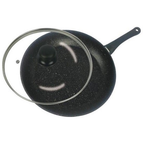 Сковородка от компании Benson, модель BN-341, Тип классическая, Максимальный размер 26 см и Материал сковороды литой алюминий, а также Материал крышки стекло.