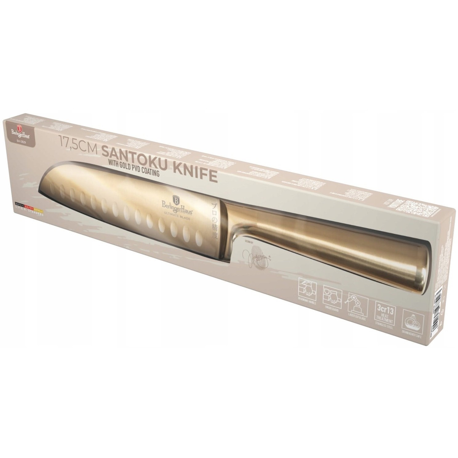 Кухонные ножи от компании Berlinger Haus, модель BH-2829, Тип сантоку, Материал лезвия сталь и Марка стали 3Cr13, а также Материал рукояти сталь.