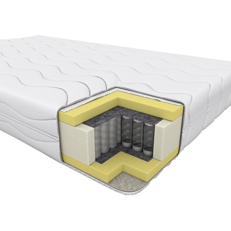 Матрасы от компании Bravo, модель Lotos 90x190, Тип пружинный (независимый), Жесткость низкая (1) и Количество слоев 7 шт, а также Наполнитель хлопок, вискоэластик, термовойлок, шерсть.