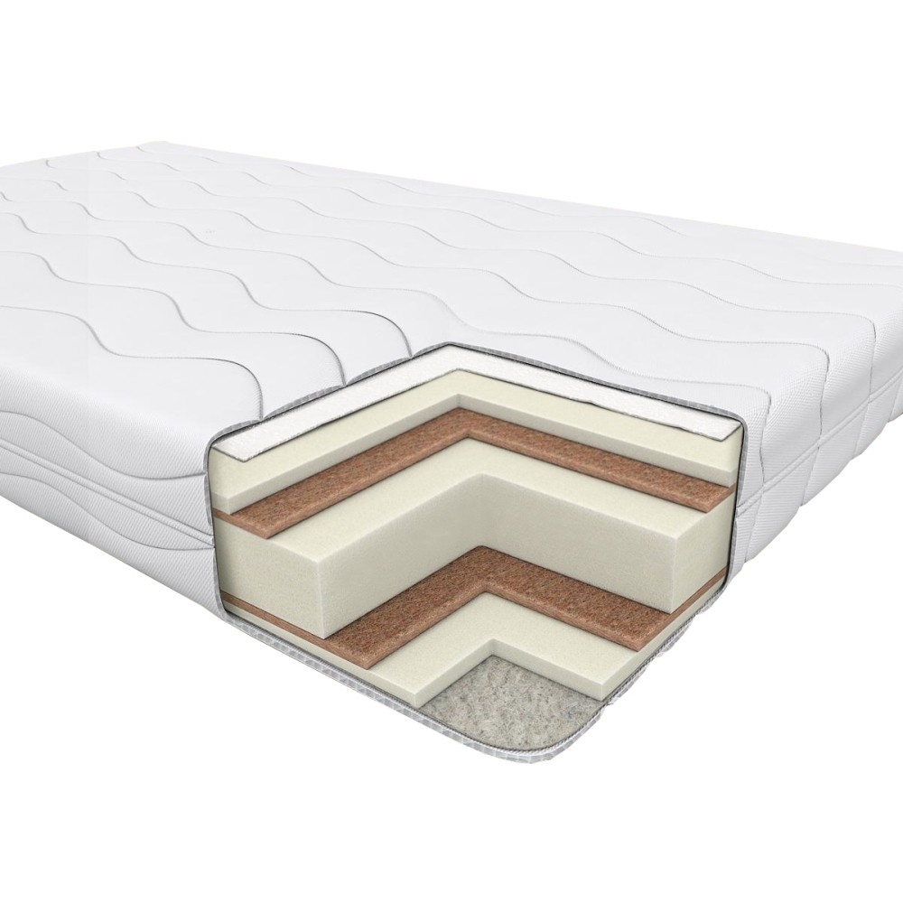 Матрасы от компании Bravo, модель Riviera 120x200, Тип беспружинный, Жесткость средняя / высокая (3/5), двусторонний и Количество слоев 7 шт, а также Наполнитель хлопок, пенополиуретан, кокосовая койра, шерсть.