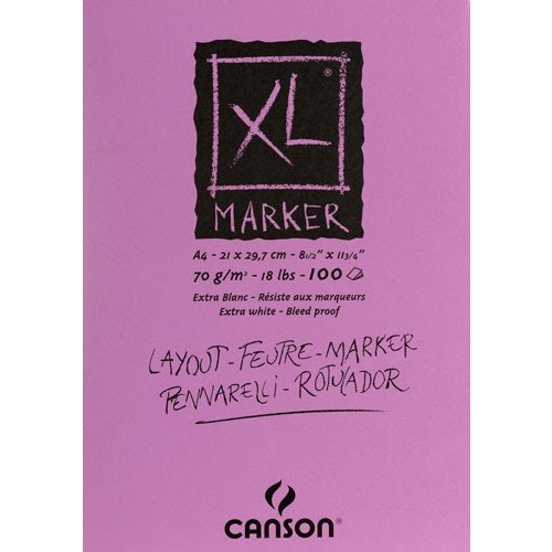Блокноты от компании Canson, модель XL Marker A4, Формат А4(21x29.7 см), Линовка без линовки и Плотность бумаги 70 г/м2, а также Переплет мягкий(100 листов).