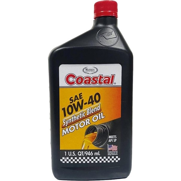 Моторные масла от компании Coastal, модель Synthetic Blend 10W-40 0.946L, Тип синтетическое, Двигатель бензиновый и Объем 0.95 л, а также SAE 10w-40.