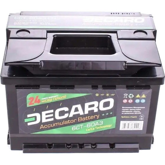 Автоаккумуляторы от компании DECARO, модель Start 6CT-190L, Тип стартерный, Назначение грузовик (автобус) и Обслуживание обслуживаемый, а также Форм-фактор европейский.