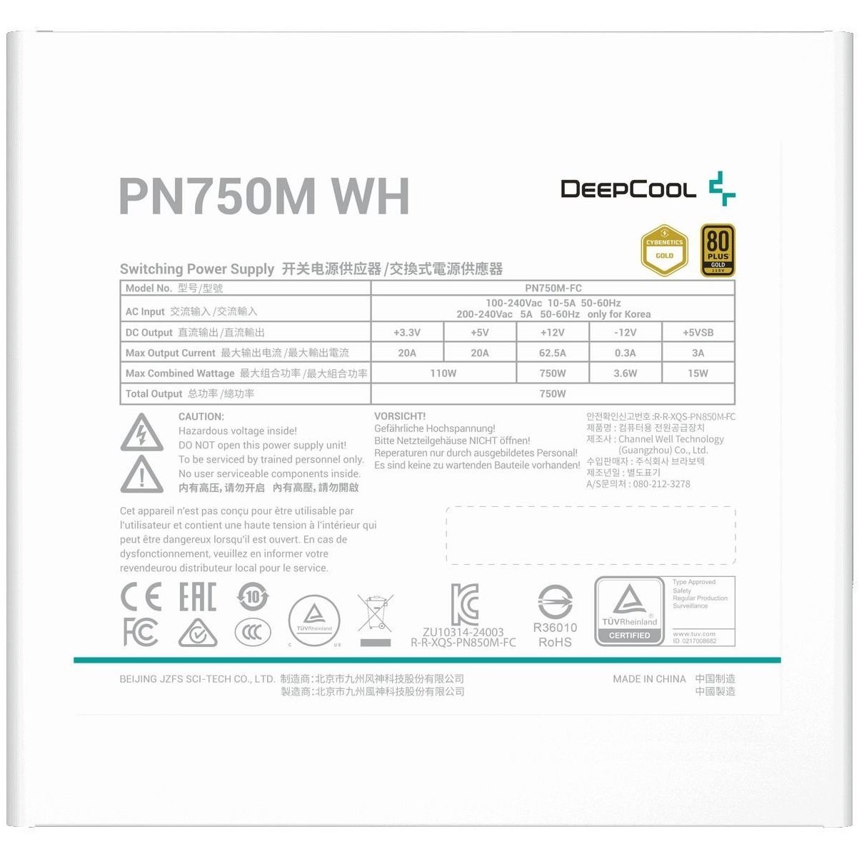 Блоки питания от компании Deepcool, модель PN750M White, Мощность 750 Вт, Форм-фактор ATX и Тип PFC активная, а также КПД 90 %.