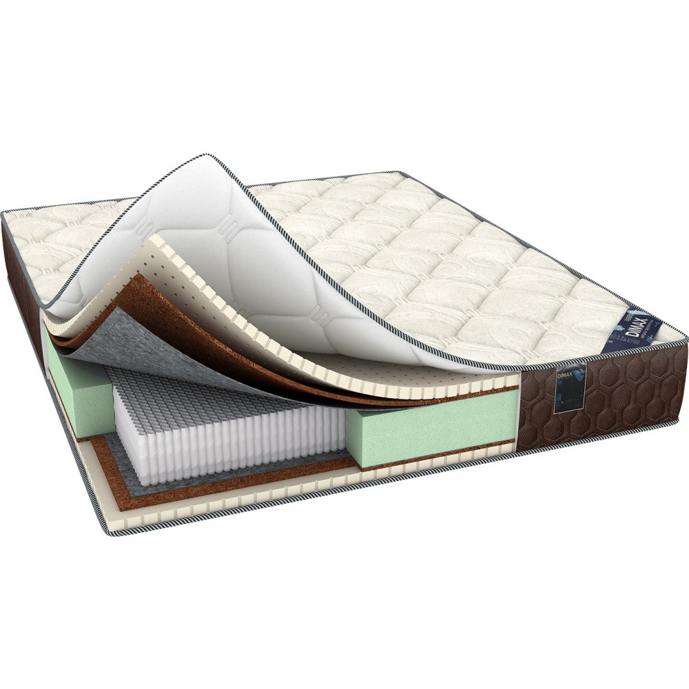 Матрас от компании Dimax, модель Element Medium (140x195), Тип пружинный (независимый), Жесткость средняя и Количество слоев 7 шт, а также Наполнитель латекс, кокосовая койра, термовойлок.