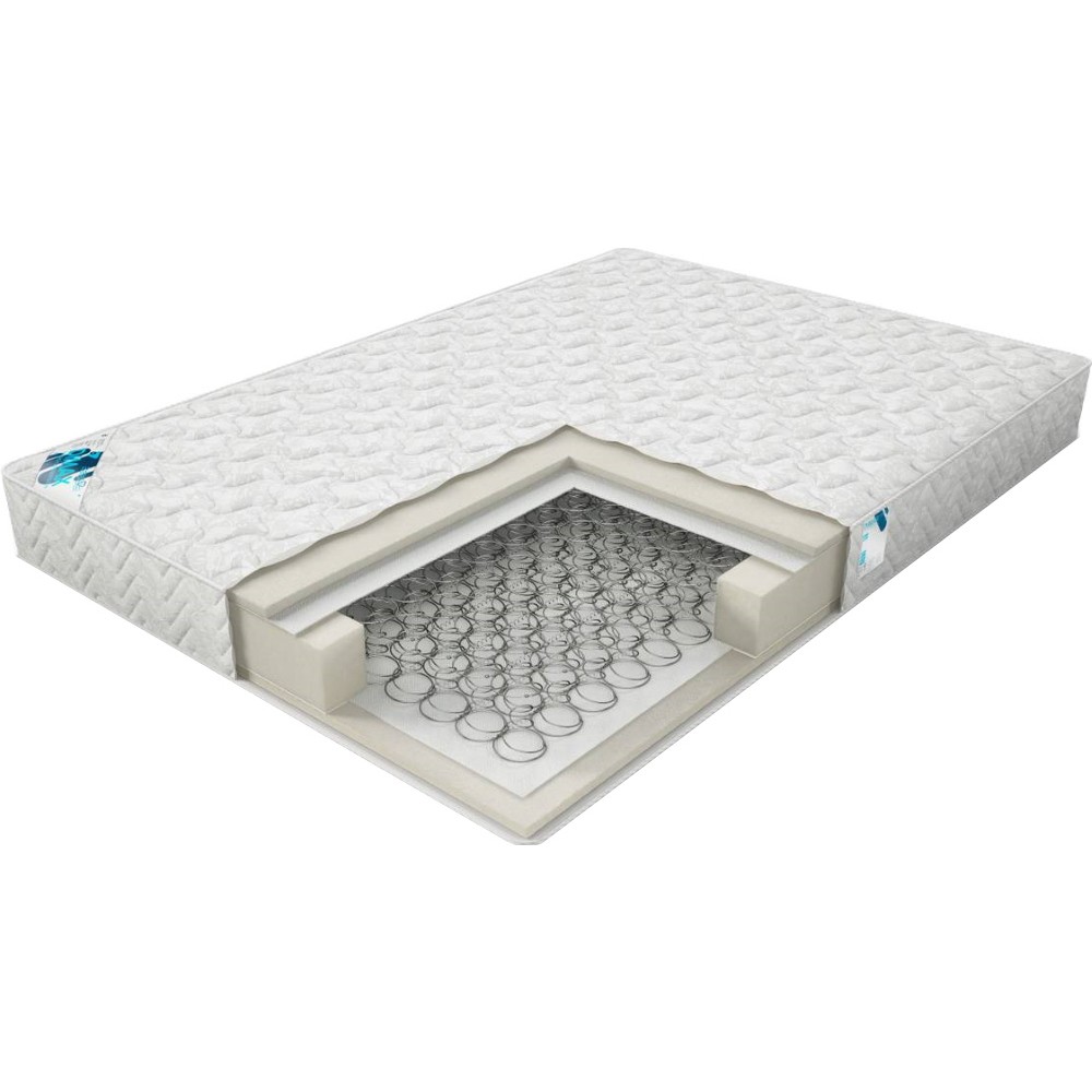Матрас от компании Dimax, модель Praktik Bazis Bonnel (80x200), Тип пружинный (Боннель), Жесткость ниже средней и Количество слоев 5 шт, а также Наполнитель пенополиуретан, спанбонд.