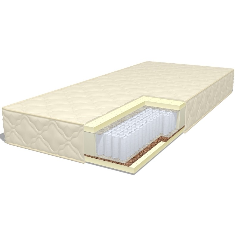 Матрас от компании Dream Line, модель Sleep Dream Soft S1000 (80x190), Тип пружинный (независимый), Жесткость низкая / средняя (1/3), двусторонний и Количество слоев 6 шт, а также Наполнитель латекс, термовойлок, кокосовая койра.