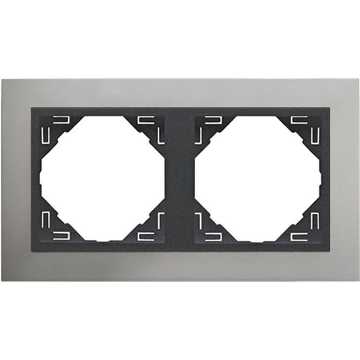 Рамки для розеток и выключателей от компании Efapel, модель Metallo 90920 KUS, Количество постов 2 шт, Расположение универсальная и Форма выреза прямоугольный, а также Внешняя форма прямоугольная (прямые линии).