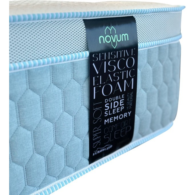 Матрасы от компании Eurosleep, модель Novum Top Foam 90x190, Тип беспружинный, Жесткость низкая / средняя (1/3), двусторонний и Количество слоев 6 шт, а также Наполнитель пена (Super Soft, Soft Elastic, Airproof), кокосовая койра, латекс.