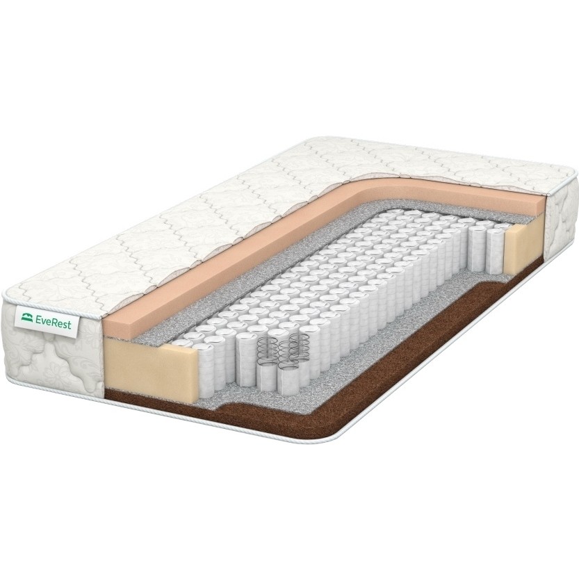 Матрасы от компании Everest, модель Cocos Memory TFK 200x195, Тип пружинный (независимый), Жесткость средняя / высокая (3/5), двусторонний и Количество слоев 5 шт, а также Наполнитель меморикс, войлок, кокосовая койра.