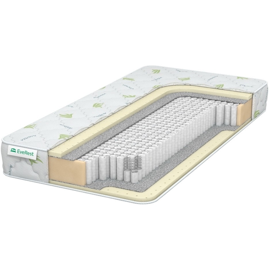 Матрасы от компании Everest, модель Latex 20 S1000 150x200, Тип пружинный (независимый), Жесткость низкая (1) и Количество слоев 5 шт, а также Наполнитель латекс, войлок.