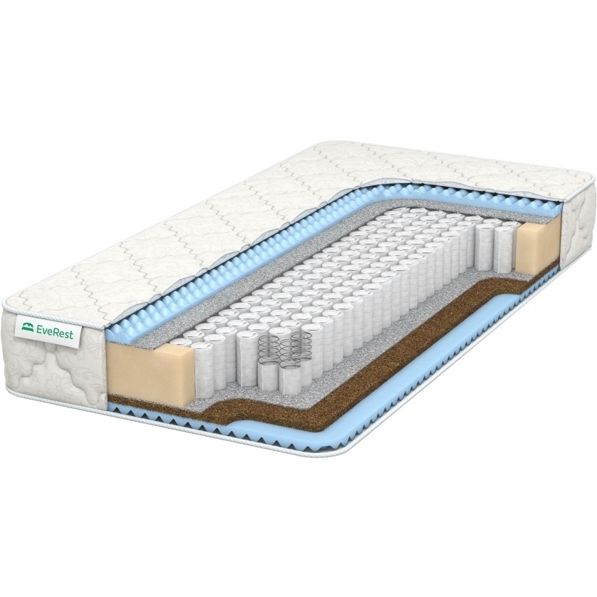 Матрасы от компании Everest, модель Massage Bi-Cocos TFK 70x190, Тип пружинный (независимый), Жесткость низкая / средняя (1/3), двусторонний и Количество слоев 6 шт, а также Наполнитель пенополиуретан Ergo Foam, войлок, би-кокос.