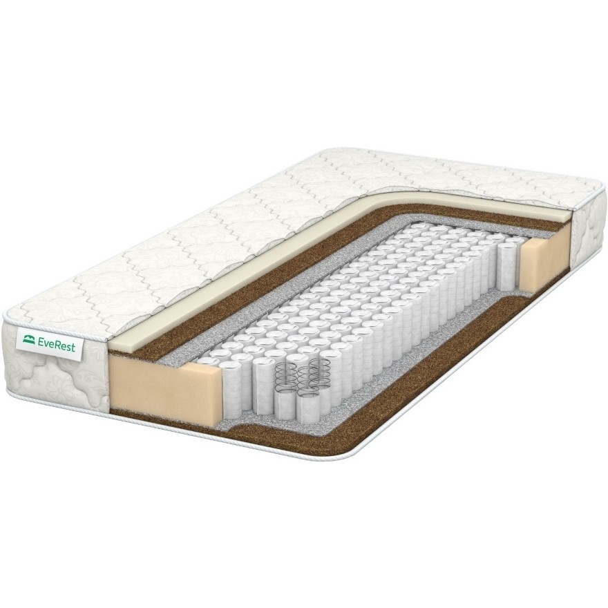 Матрасы от компании Everest, модель Restfom Bi-Cocos TFK 70x190, Тип пружинный (независимый), Жесткость средняя / высокая и Количество слоев 6 шт, а также Двусторонний +.