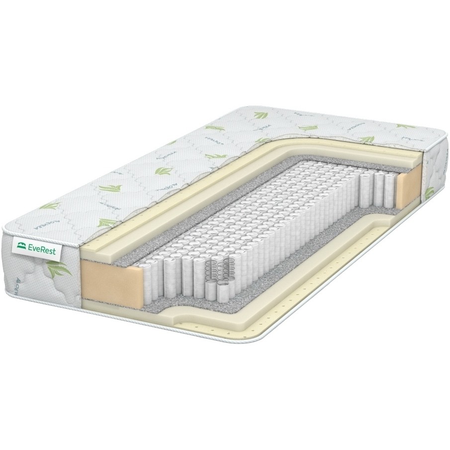Матрасы от компании Everest, модель Restfom Latex S1000 150x190, Тип пружинный (независимый), Жесткость низкая (1) и Количество слоев 7 шт, а также Наполнитель латекс, пенополиуретан, войлок.