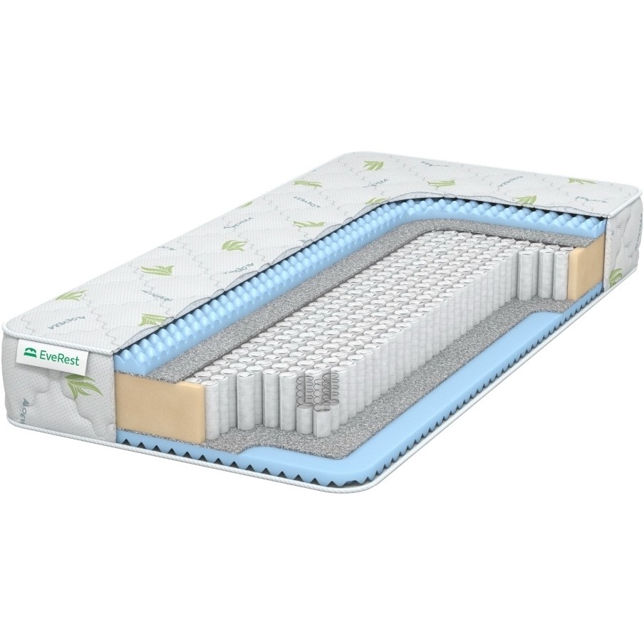 Матрасы от компании Everest, модель Restfom Massage S1000 80x190, Тип пружинный (независимый), Жесткость ниже средней (2) и Количество слоев 5 шт, а также Наполнитель пенополиуретан Ergo Foam, войлок.