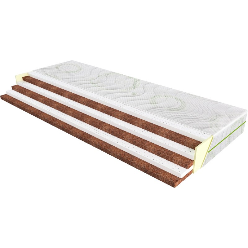 Матрасы от компании Evolution, модель Cascade New 80x190, Тип беспружинный, Жесткость средняя / высокая и Количество слоев 5 шт, а также Наполнитель латекс, кокосовая койра.