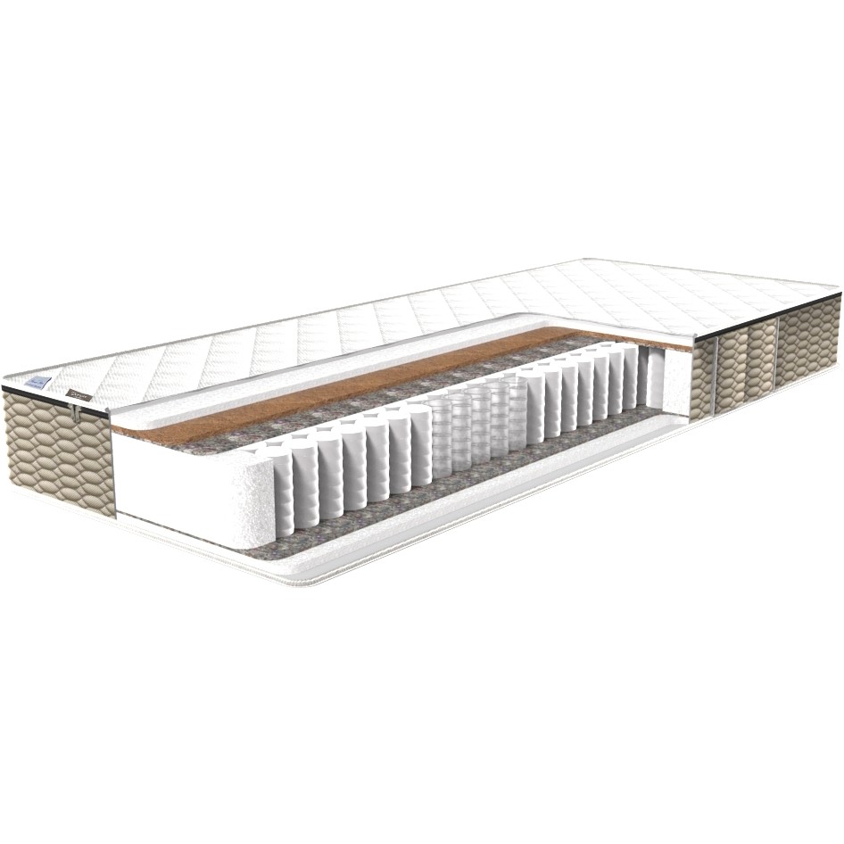 Матрасы от компании Family Sleep, модель Energy 140x200, Тип пружинный (независимый), Жесткость средняя / выше средней (3/4), двусторонний и Количество слоев 6 шт, а также Наполнитель пена (Air Foam), латексированная кокосовая койра, термовойлок.